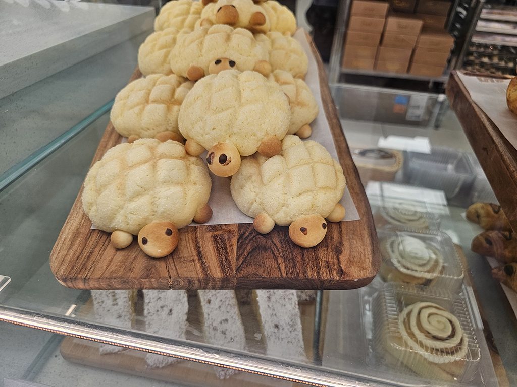 Sweet pastries that kids will love are also on display, such as turtle-shaped melon bread and cream-filled buns decorated with emojis. Not only are they fun to look at, but they’re also perfect as a treat for children!