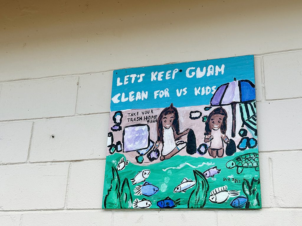 こちらはマタパンビーチで過ごす時の注意事項の看板。穏やかな海ではありますが、危険な海洋生物が生息していたり、時に離岸流が起きたりすることもあります。また、グアム政府がタモンビーチ全体を環境保護海域と指定しているため、海洋生物を捕ったり餌付けしたりすることが禁止されています。