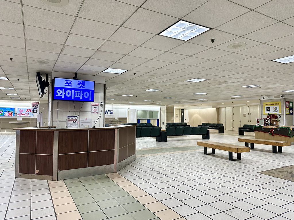 위 사진은 괌 국제공항에 있는 이콤 카운터입니다. 도착 게이트를 나온 후 오른쪽에 위치해 있습니다. 오전 9시부터 다음 날 오전 7시까지 22시간 운영되므로 이른 아침이나 심야 비행편에도 대응할 수 있습니다.
