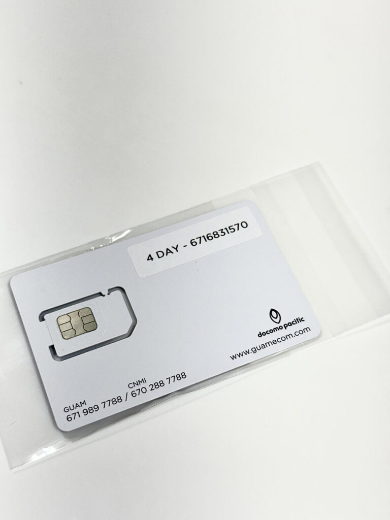 SIM 카드는 4일용과 7일용이 준비되어 있습니다. 이 또한 데이터 사용에 제한이 없으며, 괌 내에서 전화 통화에도 제한이 없습니다. 와이파이만 있으면 된다고 생각할 수 있지만, 비상 상황에서는 일반 전화 회선이 사용 가능하면 매우 든든합니다. 렌터카 문제나 사고 등으로 우리 사무실이나 경찰에 연락할 경우, 와이파이로는 연락이 어려운 경우가 많으므로 개인적으로는 SIM 카드 구매를 추천드립니다.