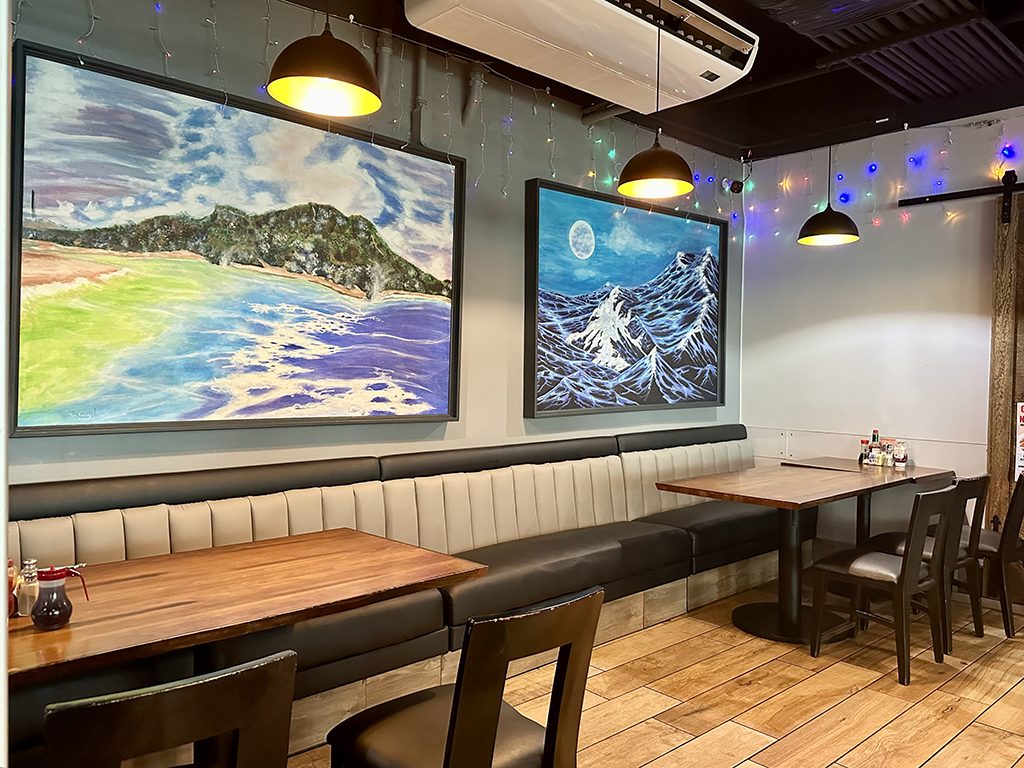 레스토랑 내부에는 괌의 풍경과 자연을 그린 그림들이 걸려 있으며, 메뉴와 내부 분위기 모두 괌 사람들이 사랑할 수밖에 없는 곳임을 알 수 있습니다.