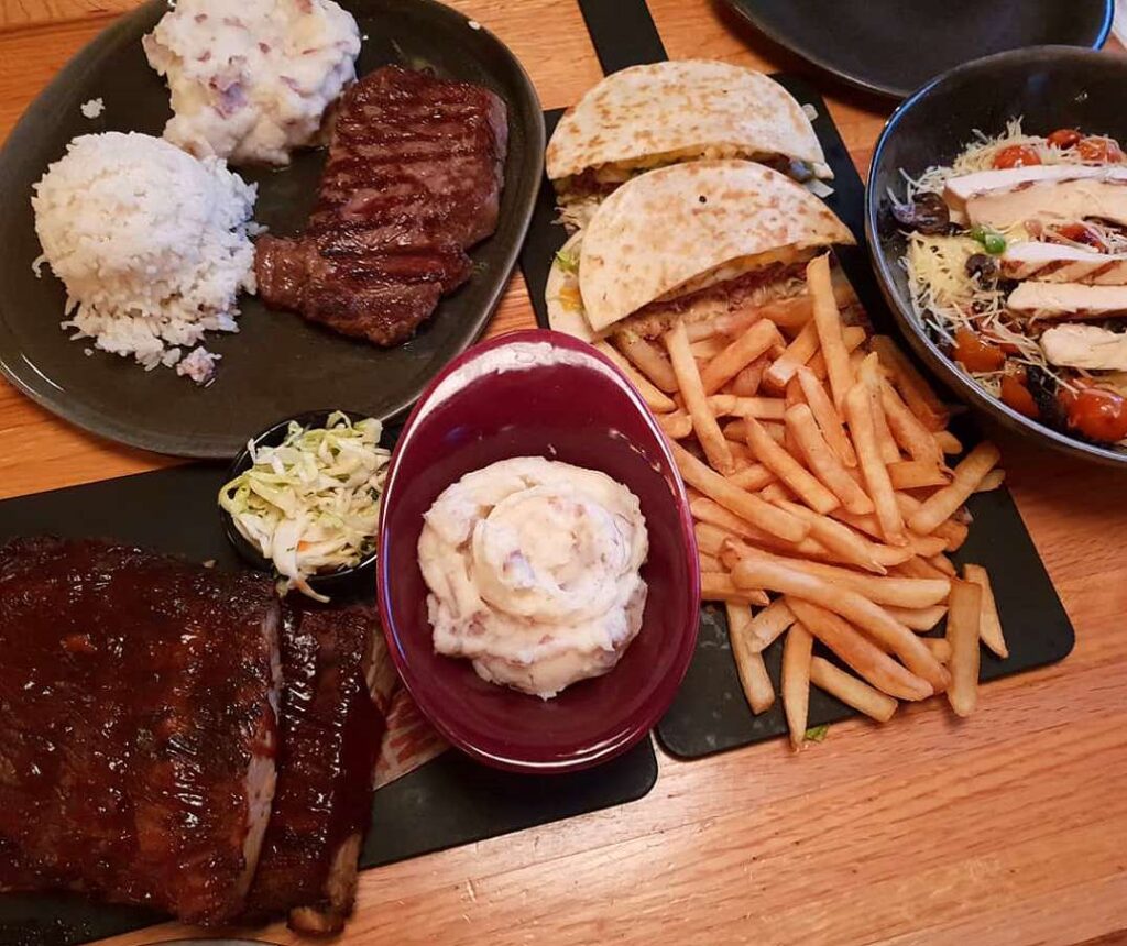 位於塔慕寧區G.P.O.暢貨中心(Guam Premier Outlet)的旁邊,步行約200公尺,停車方便,以美式和墨西哥式料理為招牌,其中不得不提的是他的肋排,在碳爐上烤到微焦,淋上特調醬汁(經典原味、蜂蜜燻辣、香草孟菲斯),完全不輸也是以肋排聞名的Tony Roma’s。