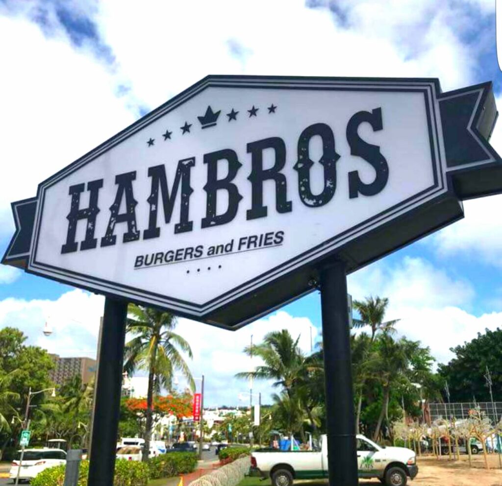 位於關島杜夢沙購物廣場旁的HAMBROS於2017年開幕,深藍色外牆與風格強烈的裝潢迅速吸引不少網紅在此拍照打卡,不過東西好吃才是真正讓它人氣爆棚的主要原因。