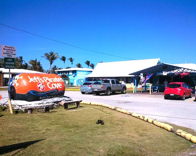 最後是關島「南霸天」的傑夫海盜餐廳Jeff’s Pirates Cove,位在關島南部 Talofofo的海灘邊,是南部環島的必吃美食。